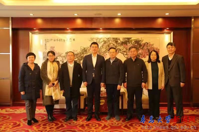新闻网讯 1月6日,青岛市侨联主席崔作一行5人走访慰问我校侨届代表人士。校长夏东伟在办公楼接待室会见并座谈。校党委副书记汪黎明出席座谈会。我校侨联主席、原党委书记夏临华,医疗集团副院长张晓春,药学院姜国辉教授作为学校侨届代表参加座谈。