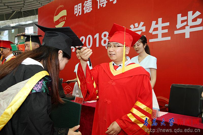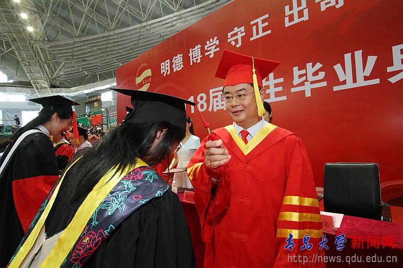校长夏东伟在热情洋溢的讲话中,向圆满完成学业的毕业生和受到表彰的各位同学表示崇高的敬意,向为同学们成长成才付出心血和汗水的家长、老师和社会各界朋友致以衷心的感谢。他说,当年,同学们怀着对未来的憧憬、对梦想的渴望,从四面八方来到青岛大学。你们勤勉不倦、学有所成,无论是在教学楼里埋头苦读,还是在实验室里专注研究,还是在体育场上奋力拼搏,美丽的青大校园,留下了你们追逐梦想的脚步,记录了你们潜移默化的成长。他分享了生命科学学院刘启君同学和上合组织青岛峰会志愿者的事迹,并为同学们多彩的人生和无悔的选择点赞。