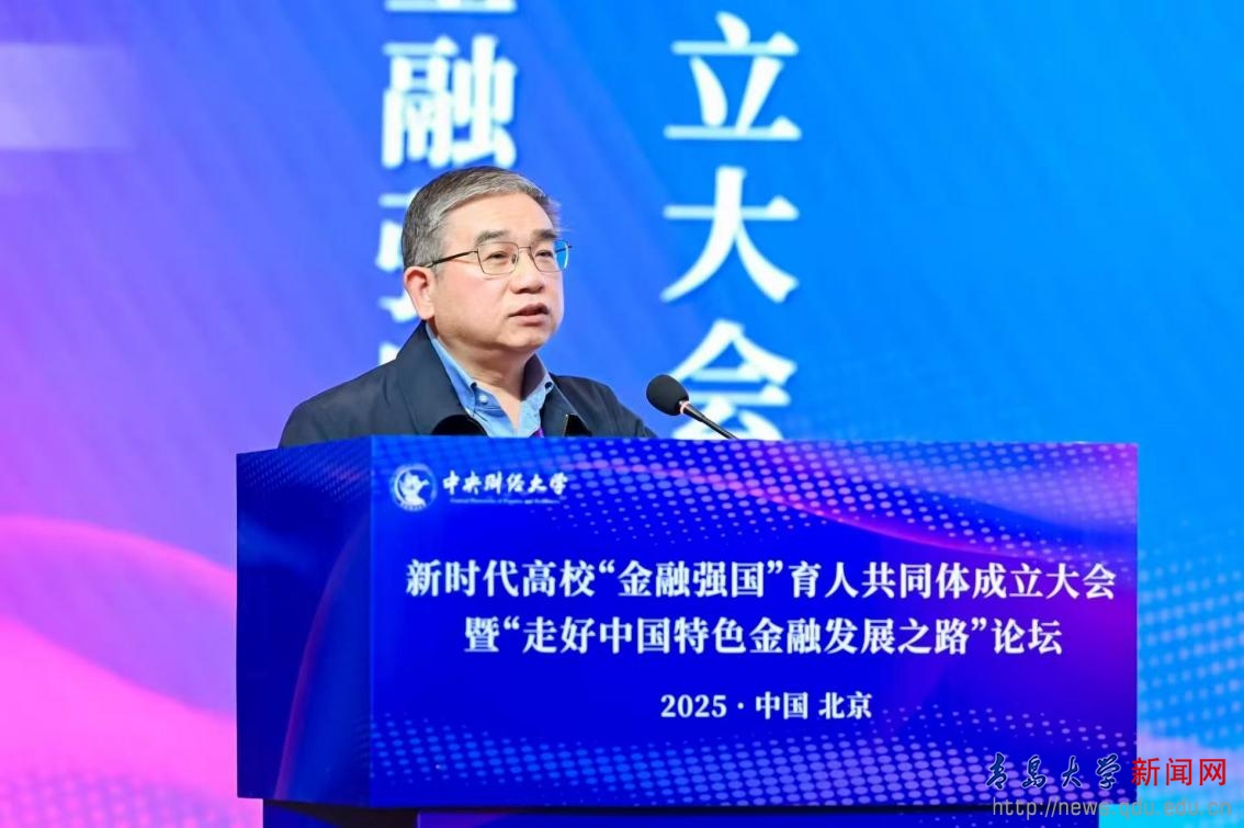 新闻网讯 12月27日,由教育部思想政治工作司、北京市委教育工委指导,中央财经大学主办的新时代高校“金融强国”育人共同体成立大会暨“走好中国特色金融发展之路”论坛在北京召开。教育部高等学校金融类专业教学指导委员会副主任委员、校党委书记胡金焱应邀出席并作主旨演讲。
