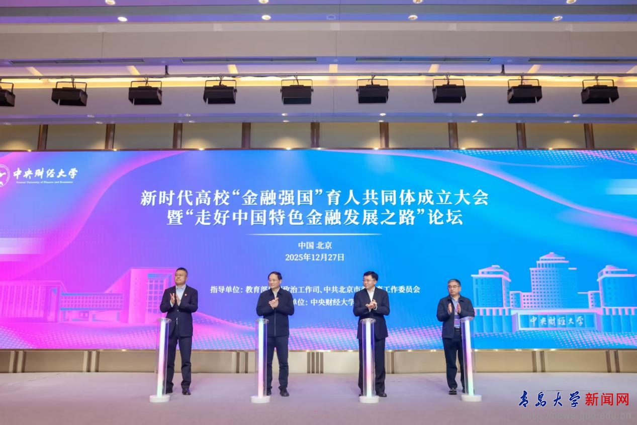 会上,教育部思想政治工作司司长魏士强,北京市委教育工委副书记邹凌,中央财经大学党委书记吴国生、教育部金融类专业教指委副主任委员、校党委书记胡金焱共同为“金融强国”育人共同体揭牌。