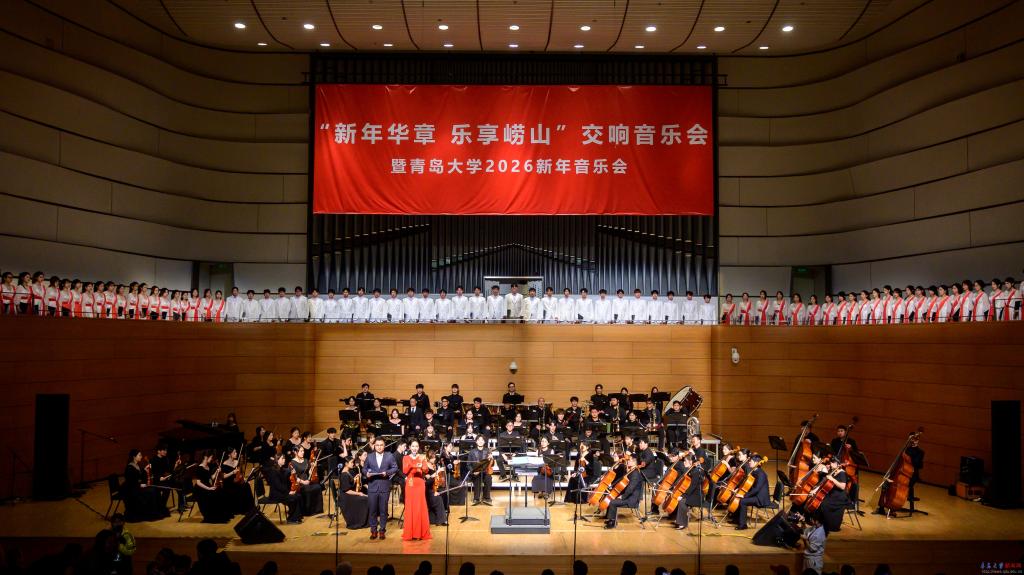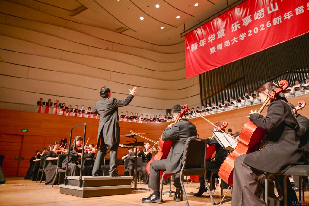 新闻网讯 日月其迈,新程肇启。12月30日晚,“新年华章 乐享崂山”交响音乐会暨青岛大学2026新年音乐会在青岛大剧院华彩启幕。校领导魏志强、陈涛、李荣贵、刘恩贤、徐大连、李建波、麻国升、吴世珍,以及来自政府、合作企业、兄弟院校、附属学校等各界嘉宾,与学校师生医务员工、校友欢聚一堂,共赏音乐盛会,以激昂旋律迎接崭新一年。