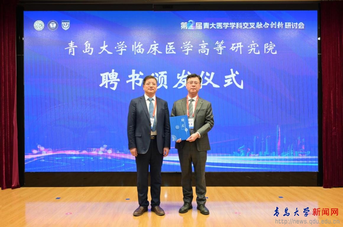 会上,青岛大学特种医学交叉创新研究院正式揭牌成立,青岛大学临床医学高等研究院颁发聘书并召开第一次院务委员会会议,脑科学与人工智能交流研讨会同期举行。
