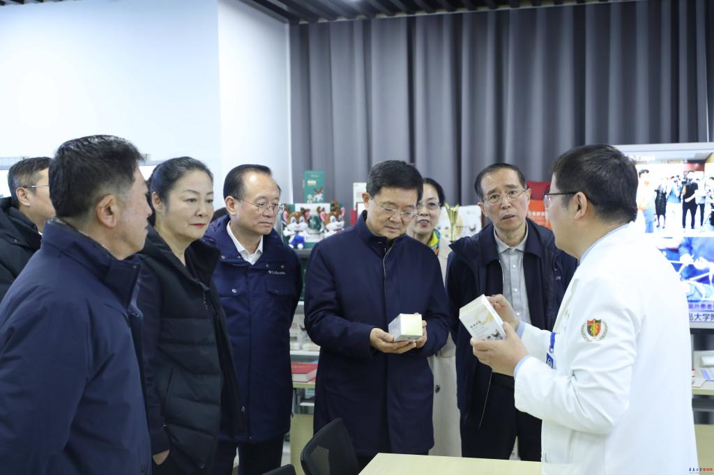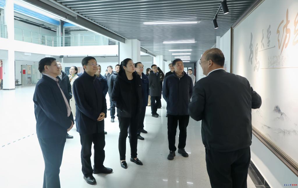 佘春明一行实地考察了纺织馆、产业技术研究院、数字医学与计算机辅助手术研究院、山东省新型研发机构(青岛大学青岛肿瘤研究院、分子医学创新中心),重点了解学校在学科交叉、科技创新和社会服务等方面的最新成果,并对学校的工作成绩给予了充分肯定,期待学校进一步依托自身学科优势,聚焦重点领域,在服务山东省高质量发展中展现更大作为、书写崭新篇章。