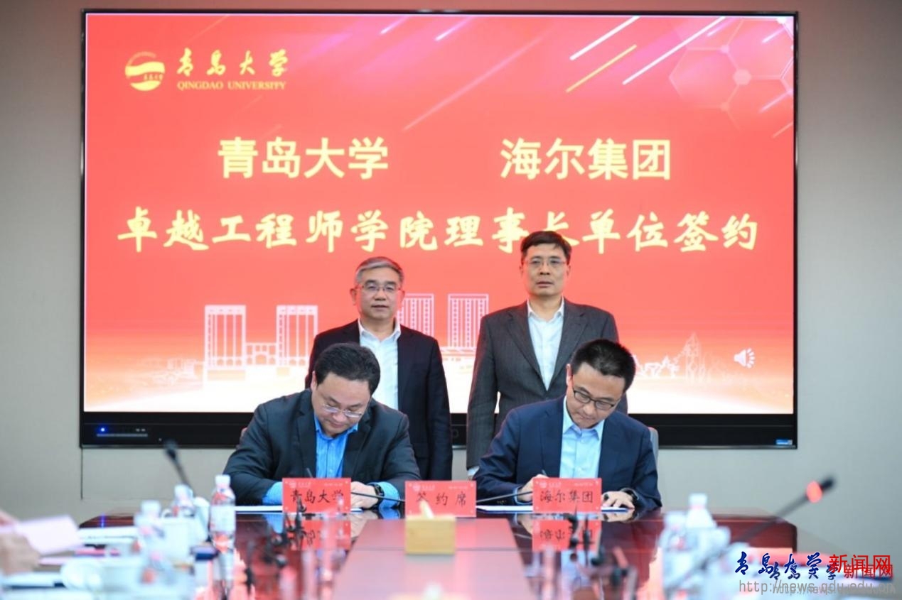 为系统推进改革,学校成立由研究生院院长牵头的专项工作小组,统筹制定《青岛大学卓越工程师学院建设方案》《青岛大学卓越工程师学院理事会章程》等13项制度文件,构建起涵盖治理结构、培养模式、质量保障等维度的制度体系,为学院高质量发展提供根本遵循。在治理架构方面,学院实行理事会领导下的院长负责制,理事会负责学院发展规划、章程制定、招生培养、资源统筹等重大事项。2025年2月24日,学校党委常委、副校长李建波和海尔集团首席技术官(CTO)王晔共同签署《青岛大学卓越工程师学院理事长单位框架协议》,标志着校企协同育人进入新的阶段。