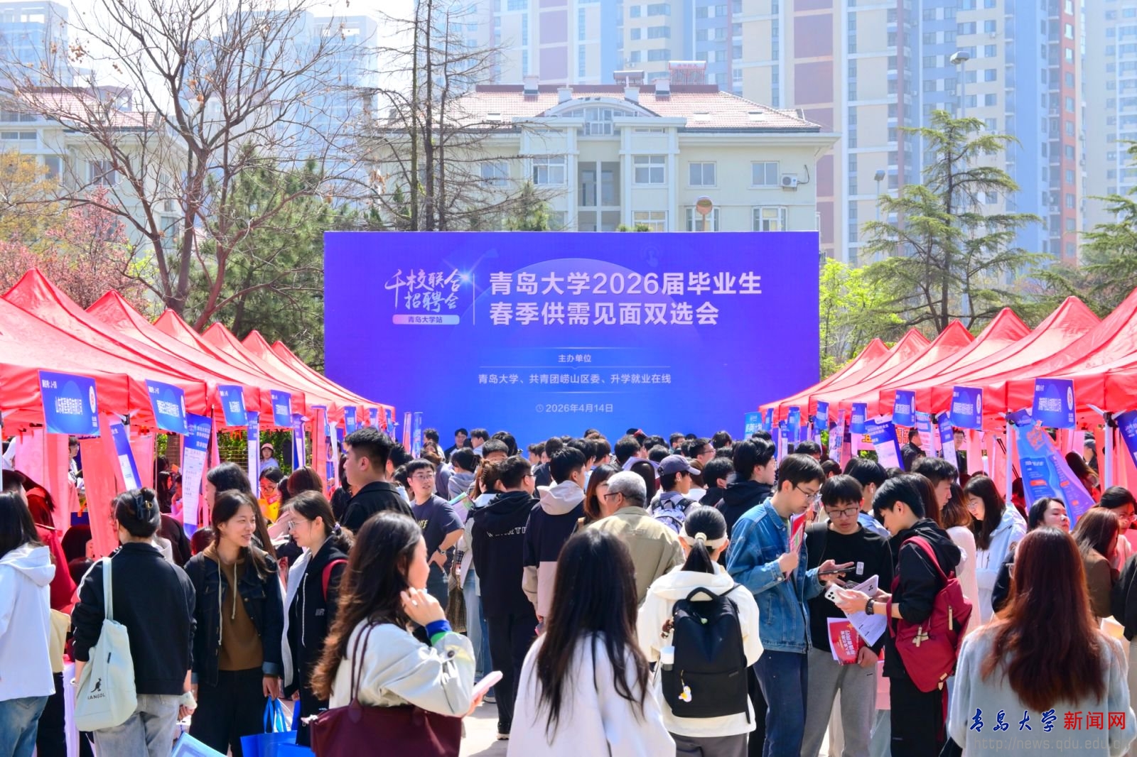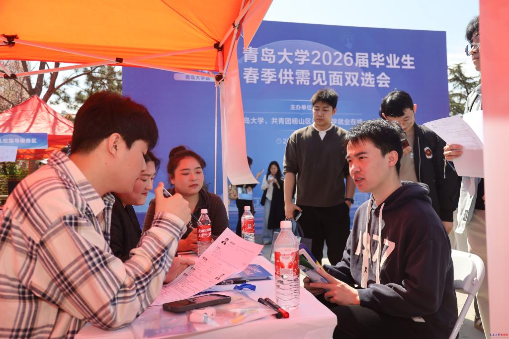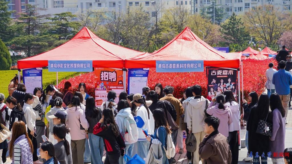 新闻网讯 为抢抓春季促就业窗口期,积极落实2026届高校毕业生“春季促就业攻坚行动”部署,4月14日,学校联合共青团崂山区委、升学就业在线在浮山校区东院海月广场举办千校万企联合促就业(青岛大学站)暨2026届毕业生春季供需见面双选会,同期在青大剧院承办“链青岛·才精彩”互联网人才直通车活动启动仪式。校党委常委、副校长麻国升参加仪式,并深入双选会现场,调研指导校企合作及就业服务工作。