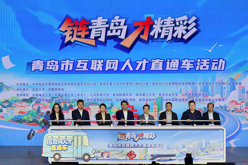 “链青岛·才精彩”青岛市互联网人才直通车活动启动仪式现场,13所高校“链青同心”联盟集结,共同启动“链青岛·实习生计划”,20多家互联网领军企业携百余岗位求贤,为毕业生提供了多元适配的岗位选择和成长舞台。