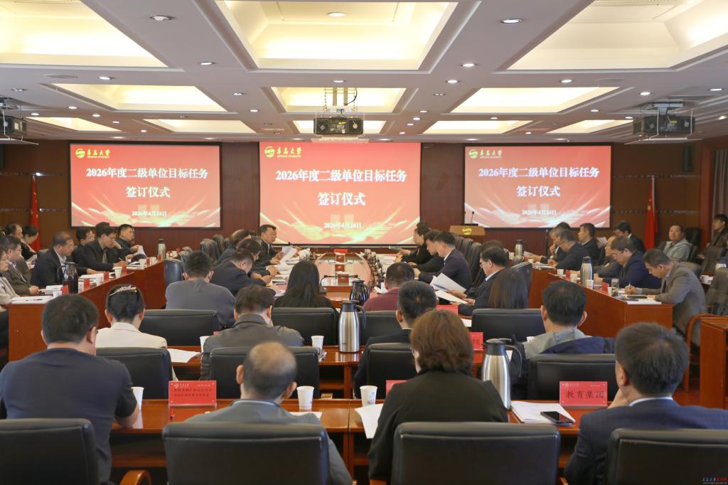 新闻网讯 4月24日,学校在办公楼第一会议室举行2026年度二级单位目标任务签订仪式。校党委书记胡金焱、校长魏志强出席会议并讲话,校领导李荣贵、徐大连、麻国升出席会议,校党委常委、副校长刘恩贤主持会议。