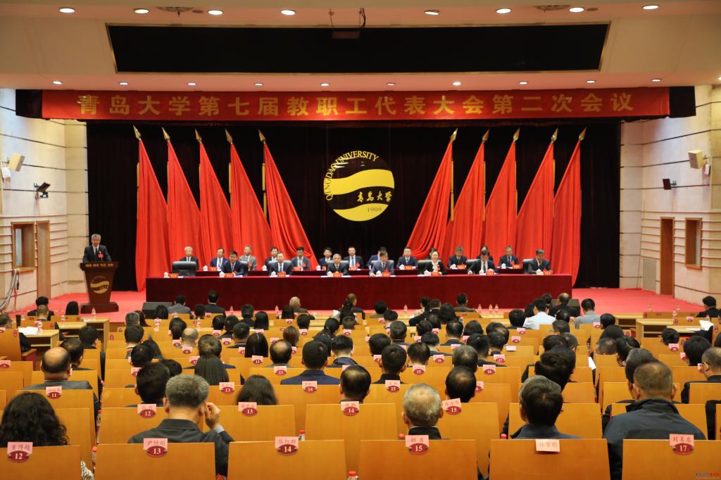 新闻网讯 4月25日,青岛大学第七届教职工代表大会、工会会员代表大会第二次会议(以下简称七届二次“双代会”)在国际学术交流中心博学厅召开。会议回顾了七届一次“双代会”以来学校事业发展取得的成就,研究部署了2026年重点工作,听取并审议通过了校长工作报告,审议通过了学校财务工作报告、学校“十五五”事业发展规划、工会委员会工作报告、工会经费审查委员会工作报告等各项报告和决议。
