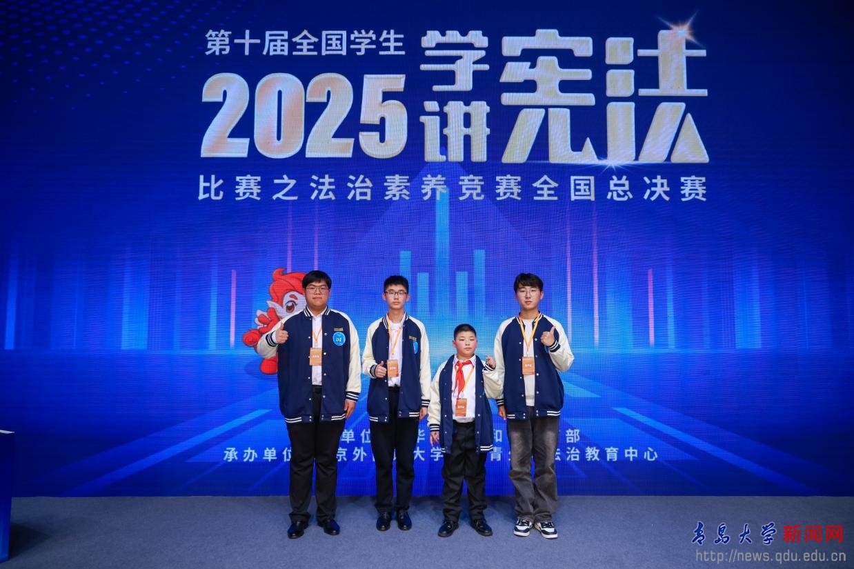 新闻网讯 12月3日,由教育部主办的第十届全国学生“学宪法 讲宪法”全国总决赛在北京外国语大学落下帷幕。总决赛设演讲比赛和法治素养竞赛两大项目,涵盖小学、初中、高中及高校四个组别,吸引了全国31个省(自治区、直辖市)、新疆生产建设兵团、香港、澳门特别行政区的代表队同台竞技。其中,法治素养竞赛以省级代表队为单位展开团队角逐,我校法学院2023级本科生苗立长在第十届全省学生“学宪法 讲宪法”素养竞赛中获得特等奖,入选山东省代表队,作为山东省高校组代表出征全国总决赛。经过多轮激烈角逐,山东省代表队最终荣获第十届全国学生"学宪法讲宪法"法治素养竞赛团队二等奖。苗立长将代表学校参加第十届学生“学宪法 讲宪法”活动成果展示暨省级决赛颁奖仪式。