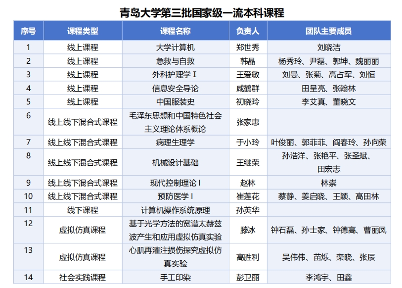新闻网讯 近日,教育部印发《关于公布第三批国家级一流本科课程认定结果的通知》(教高函〔2025〕9号),我校14门课程入选第三批国家级一流本科课程。其中,线上一流课程5门、线上线下混合式一流课程5门、线下一流课程1门、虚拟仿真实验教学一流课程2门、社会实践一流课程1门。截至目前,学校在教育部一流本科课程“双万计划”中累计获批国家级一流本科课程36门、省级104门。