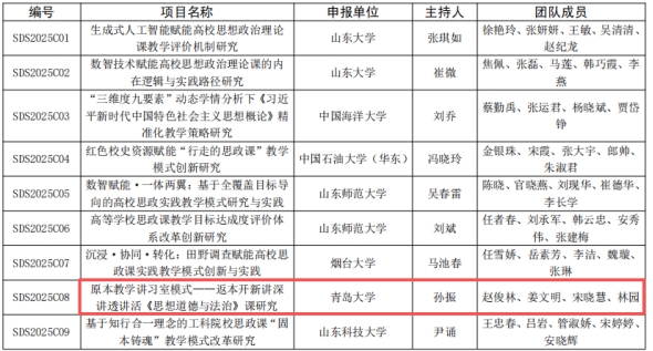 新闻网讯 近日,山东省教育厅公布2025年山东省思想政治教育教学改革项目立项名单,我校有2项课题获批,是学校在深化“大思政”工作建设中的重要实践成果。