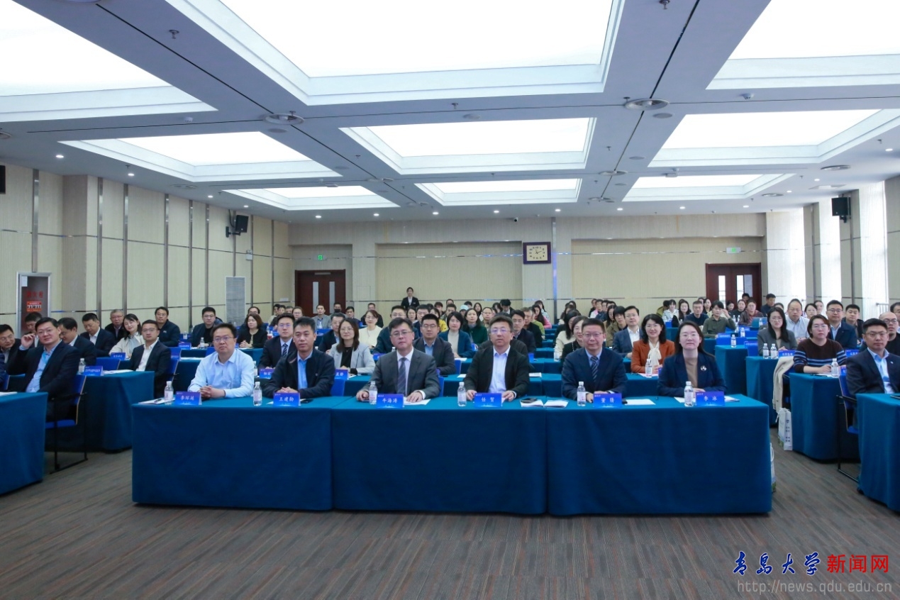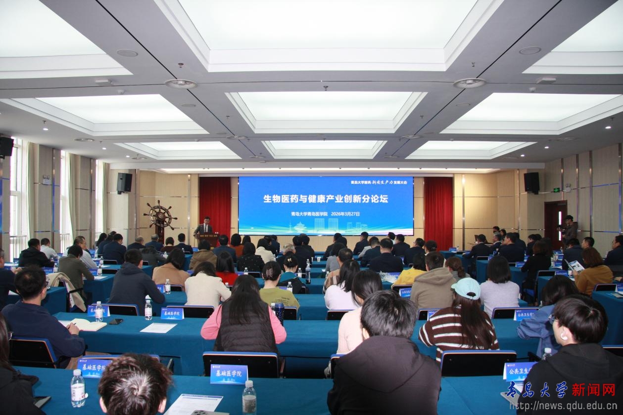 牛海涛在致辞中代表青岛大学向与会嘉宾表示热烈欢迎,向长期以来关心支持青大医学事业发展的各界人士致以衷心感谢。他表示,2026年全国两会明确将生物医药定位为国家新兴支柱产业,生物医药与健康产业已成为培育新质生产力、推动高质量发展的重要赛道。本次论坛作为学校服务新质生产力发展大会的重要组成部分,聚焦新药创制、高端医疗器械、智能机器人、基因与细胞治疗、精准营养等重点方向,汇聚政、校、医、研、企等多元创新要素,推动创新链、人才链、产业链与金融链深度融合。青大医学紧扣国家“向极端条件迈进”的科研导向,锚定山东省产业发展方向,精准对接青岛现代海洋城市与“中国康湾”建设目标,围绕航天、极地、深海等极端环境下的医学需求,体系化构建交叉融合的育人体系、贯通链条的攻关体系、开放协同的生态体系。他表示,青岛大学愿与行业领军企业携手,打通从基础研究到临床应用、从实验室到病房、从技术突破到产业转化的全链条通道,深化校地企在平台共建、项目共研、人才共育等方面的合作,共同打造生命健康产业高地,以医学创新赋能健康产业高质量发展。他还围绕医工交叉创新研究,对学校“医学+”学科集群作了详细介绍。