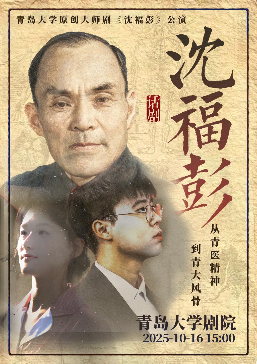 为引导广大学生深刻感悟科学家精神,树立远大理想,厚植家国情怀,铭记并学习一代代优秀知识分子为国为民、无私奉献的崇高品格,校团委特组织青岛大学原创大师剧《沈福彭》首次公演。该剧作为成功入选我校首届校园文化精品项目的优秀作品,由校党委宣传部、校工会、校团委、青岛医学院、文学与新闻传播学院共同指导排演。通过生动的艺术形式,讲述先辈故事,弘扬科学报国的光荣传统,激励学生砥砺前行。现将有关事宜通知如下: