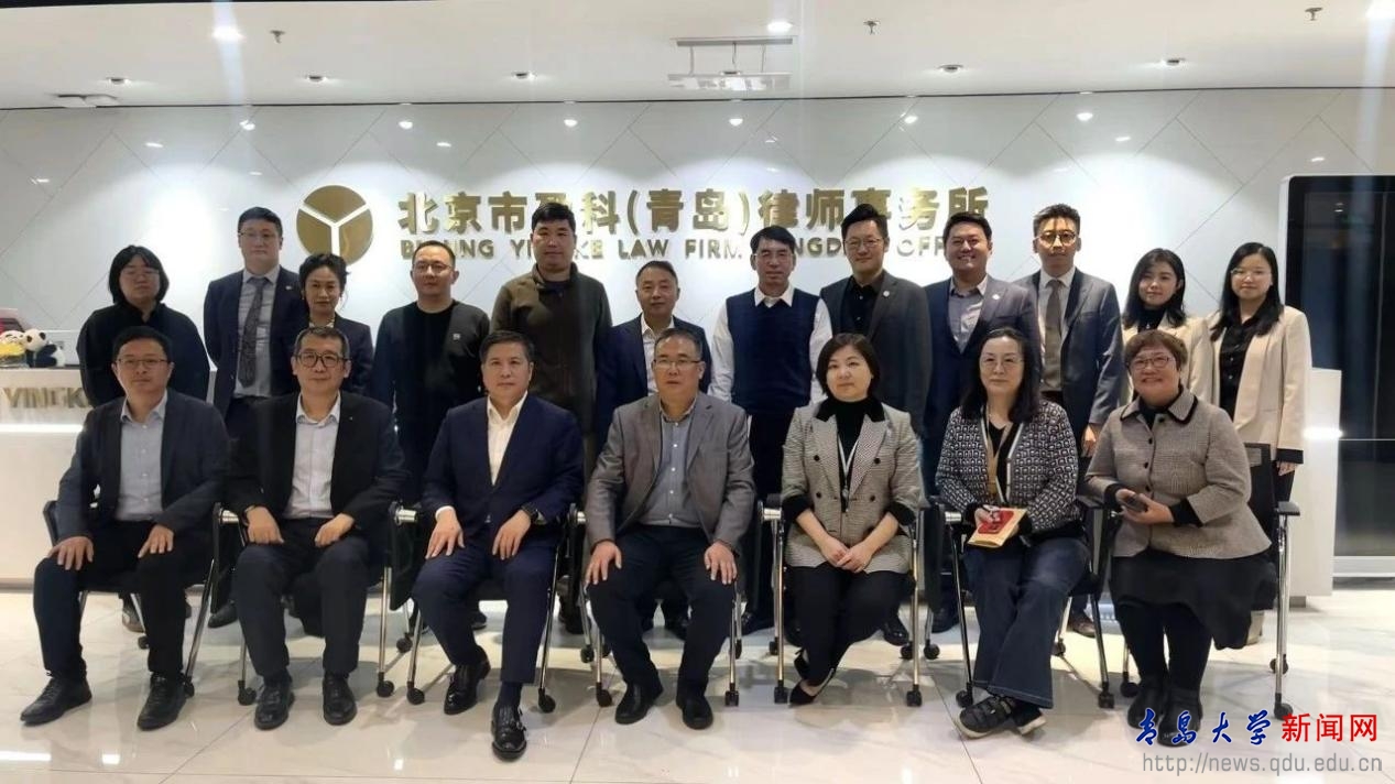 新闻网讯 为深化高校与实务部门双向交流,拓展学生实习实训和就业基地建设,近日,法学院党委书记李建新一行到北京盈科(青岛)律师事务所(以下简称“盈科青岛所”)走访调研。盈科青岛所执行主任于靖、所党总支书记黄永超、监事会主任查俭、高级合伙人马国庆、高级合伙人郝兴利、高级合伙人伊廷科、在盈科青岛所兼职的法学院教师、在盈科青岛所工作的法学院毕业生代表以及盈科青岛所青年律师代表参加调研活动。