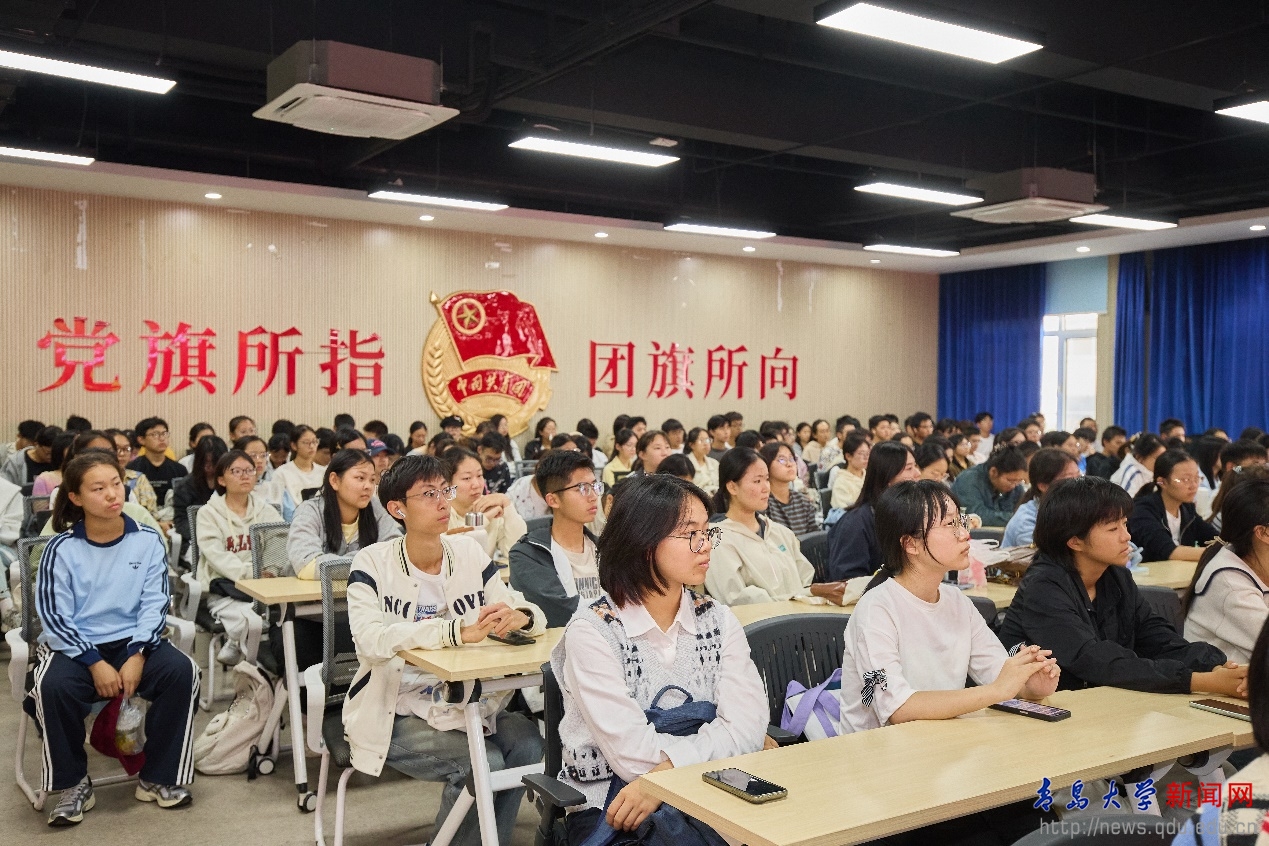 公共外语教育学院教师代表及青岛大学学生代表参加活动。公共外语教育学院教师梁向真担任现场同步翻译。