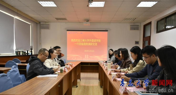 陈崇研代表外语学院对三峡大学外国语学院同仁的到访表示诚挚欢迎,并围绕外语学院发展脉络、学科设置、教师队伍建设等方面介绍了基本情况。他表示,外语学院紧扣“博学外国语、笃行中国心”院训,发挥多语种学科特色优势,确定“党建引领、思政赋能、朋辈牵引、协同育人”的人才培养理念,通过多项举措落实全员全方位全过程育人,旨在着力培养兼具国际视野与家国情怀的优秀涉外人才。