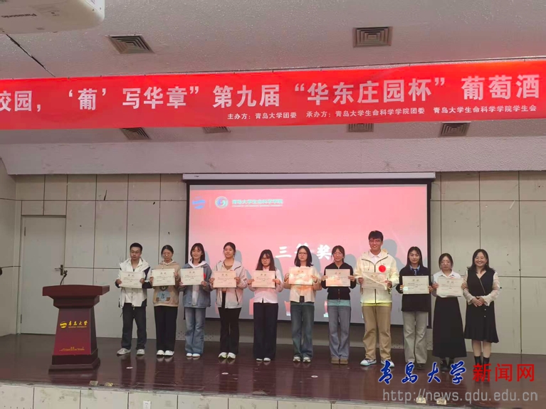 新闻网讯 近日,由我校团委主办、生命科学学院承办的“酒韵校园,‘葡’写华章”第九届葡萄酒自酿大赛决赛在浮山校区图书馆报告厅举行。校团委书记李鹏,国家一级酿酒师、一级品酒师、高级工程师、华东葡萄酒公司副总工程师孟佳敏,生命科学学院党委副书记张雪蕾,《葡萄酒文化鉴赏》课程授课教师王嘉慧、赵珍及决赛队伍各学院教师代表受邀担任评委。