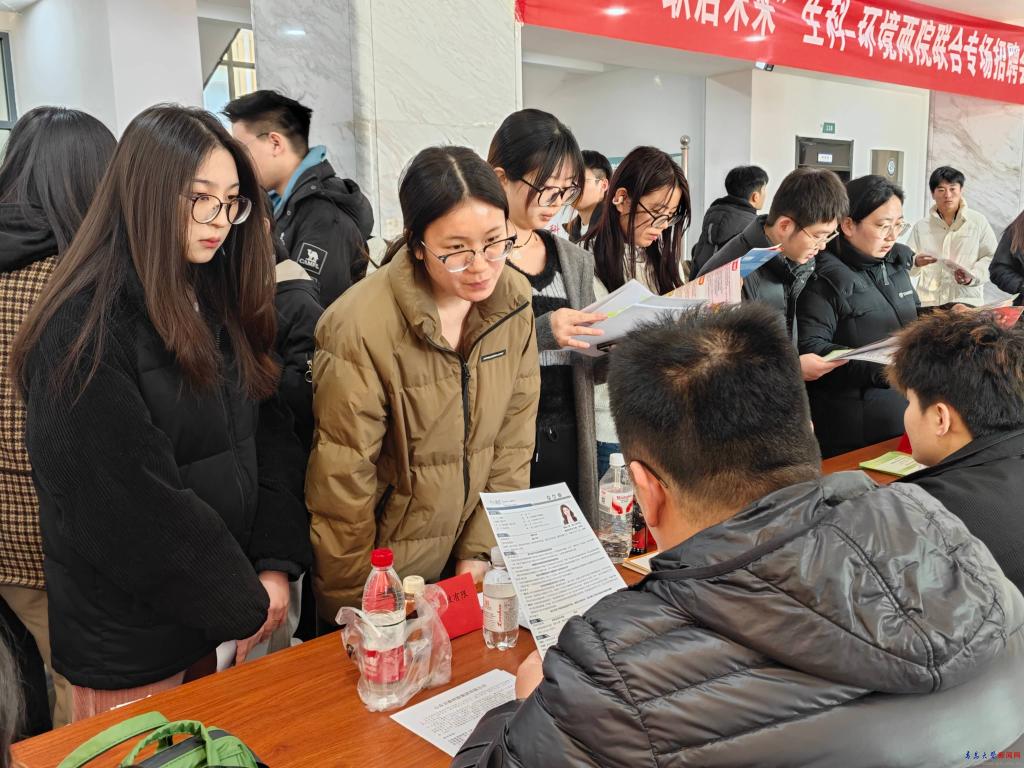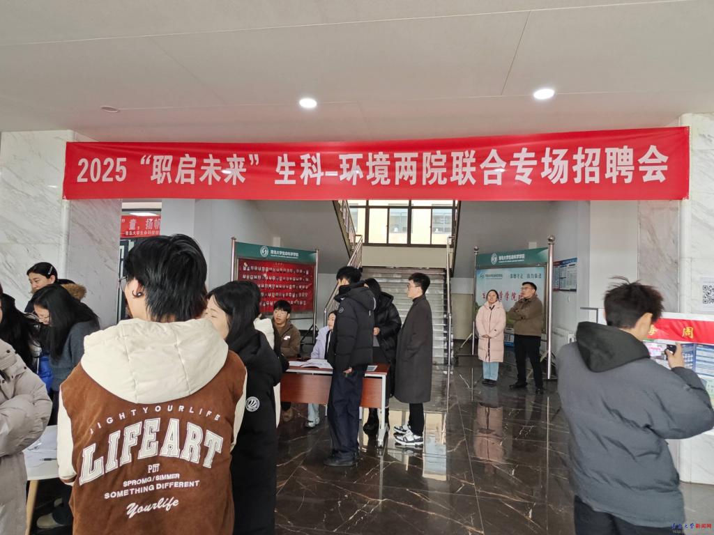新闻网讯 12月4日,我校生命科学学院联合环境与地理科学学院,在浮山校区西院博雅楼大厅举办2026届毕业生两院联合专场招聘会。本次招聘会聚焦生科、环境学科特色,共邀请12家山东省内优质用人单位参与,为毕业生搭建精准的就业对接平台,现场交流氛围热烈有序。