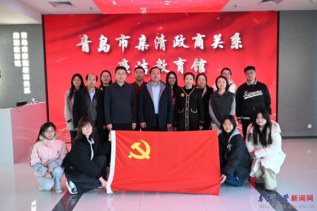 新闻网讯 12月17日,经济学院师生党员代表赴青岛市亲清政商关系廉洁教育馆开展学习实践活动。经济学院党委书记邱建国、副书记于文洁、副院长徐保昌与各党支部党员代表参加本次活动。