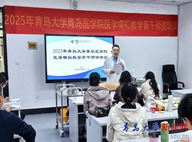 新闻网讯 为加强医学模拟教学师资队伍建设,推动师资培养与医学人才培育的同质化进程,近日,2025年青岛大学青岛医学院医学模拟教学骨干师资培训在松山校区临床技能学实验中心成功举办。青岛医学院常务副院长李冰出席开班仪式并致辞,来自12家附属医院和教学医院的80余名医学模拟教学骨干师资参加了本次培训。