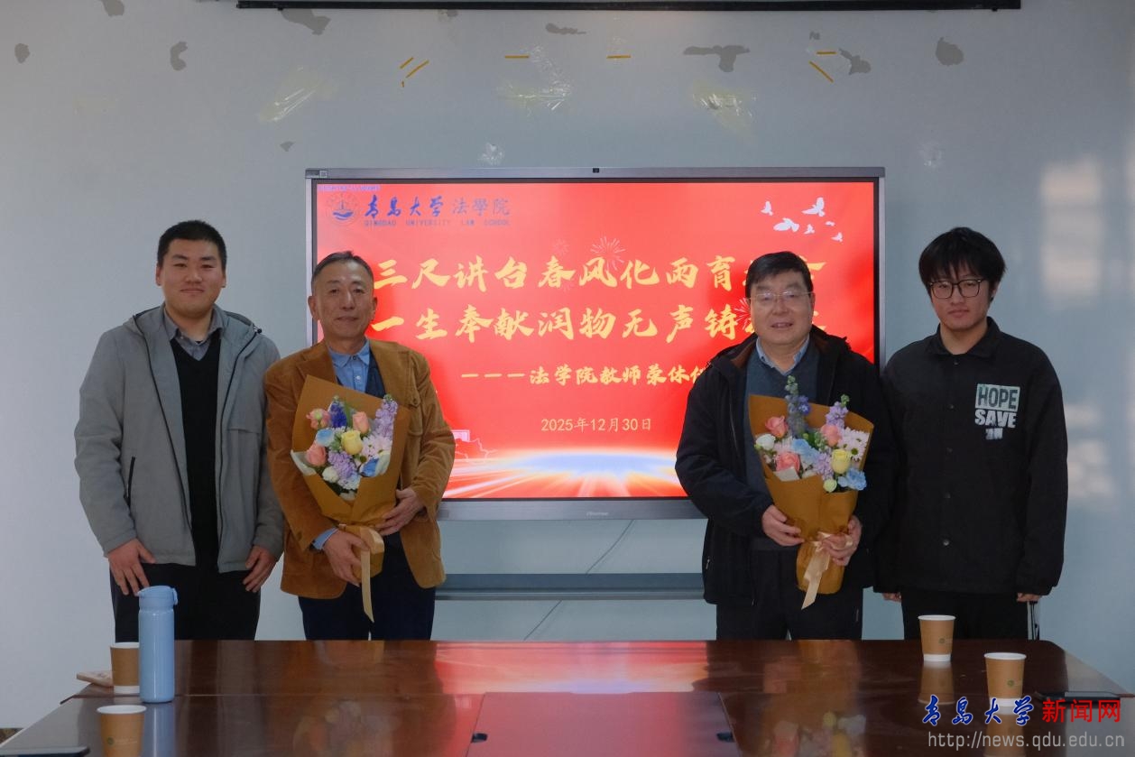 新闻网讯 12月30日,法学院在学院会议室为谭庆德、杨晓林老师举办荣休仪式,院党委书记李建新、党委副书记庞在辛、副院长董桂武以及师生代表参加活动。