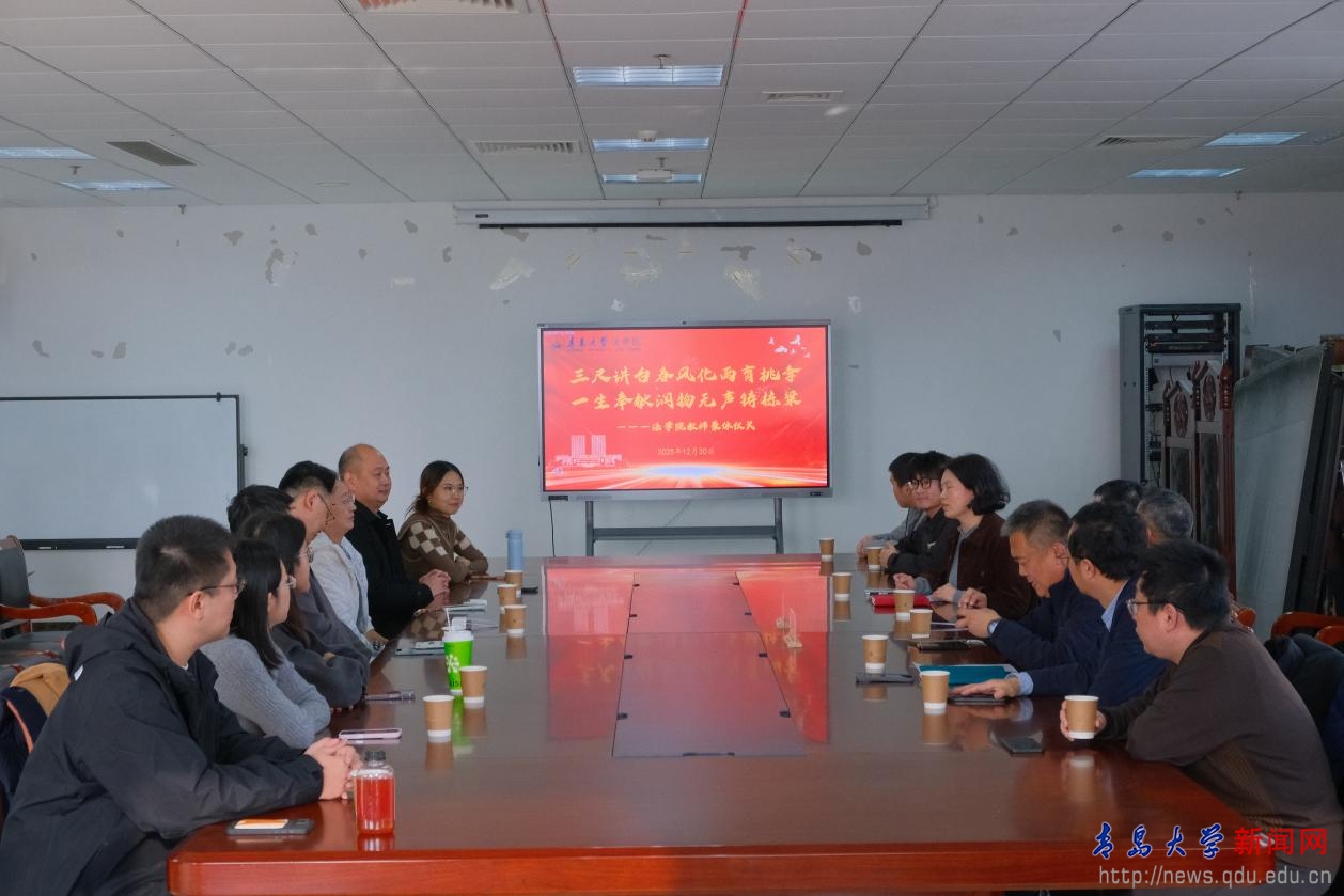 李建新代表学院师生,向光荣退休的两位老师,表达最衷心的感谢和最崇高的敬意,感谢两位老教师把最美好的青春年华、最旺盛的工作热情、最丰富的智慧经验,毫无保留地奉献给了党的教育事业,奉献给了青岛大学法学学科建设和法治人才培养的神圣事业。衷心希望两位老师规划好退休生活,发展自己的兴趣和爱好,开启人生崭新的阶段。同时,希望两位教师能够一如既往地关心、支持学院的改革与发展。学院也将继续用心用情用力做好退休老同志的服务保障工作,努力让大家在政治上有荣誉感、组织上有归属感、生活上有幸福感。