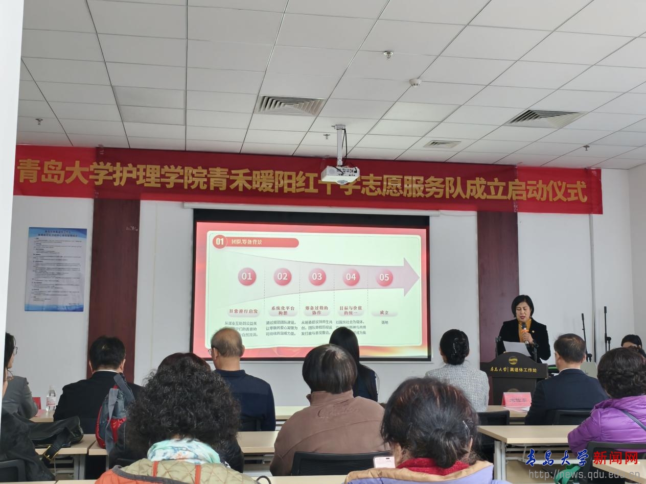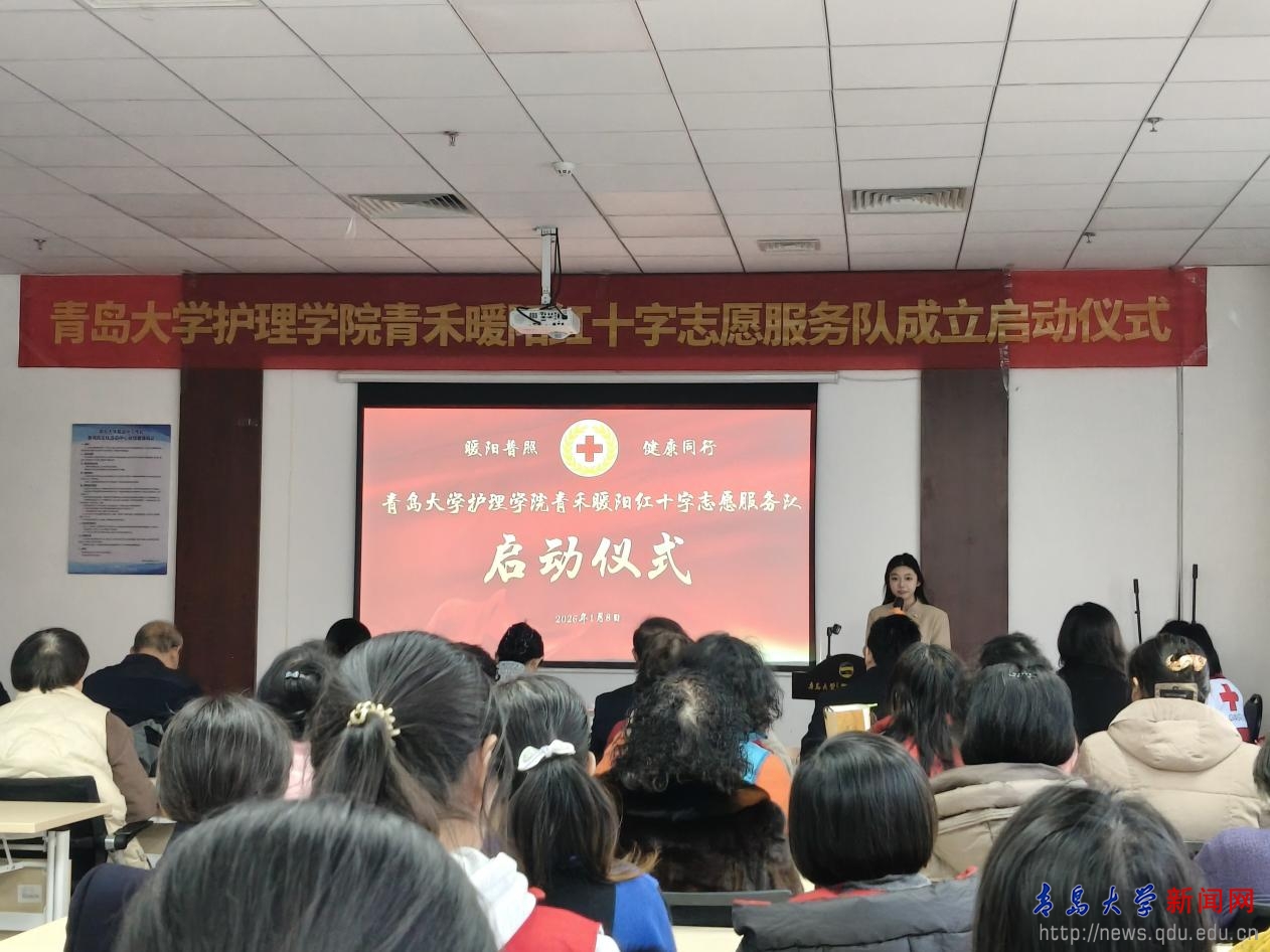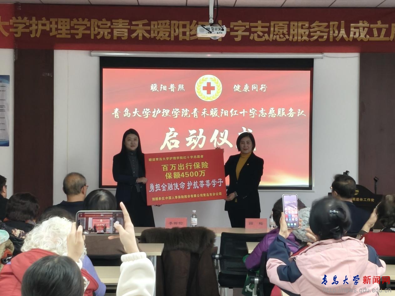 新闻网讯 1月8日,护理学院“青禾暖阳”红十字志愿服务队成立暨首次服务活动启动仪式在离退休工作处会议室举行。青岛市红十字会、中国人寿青岛分公司相关负责人,我校离退休工作处、团委、青岛医学院、护理学院等部门负责人,携手医学领域资深专家与志愿服务队成员共同参加仪式。