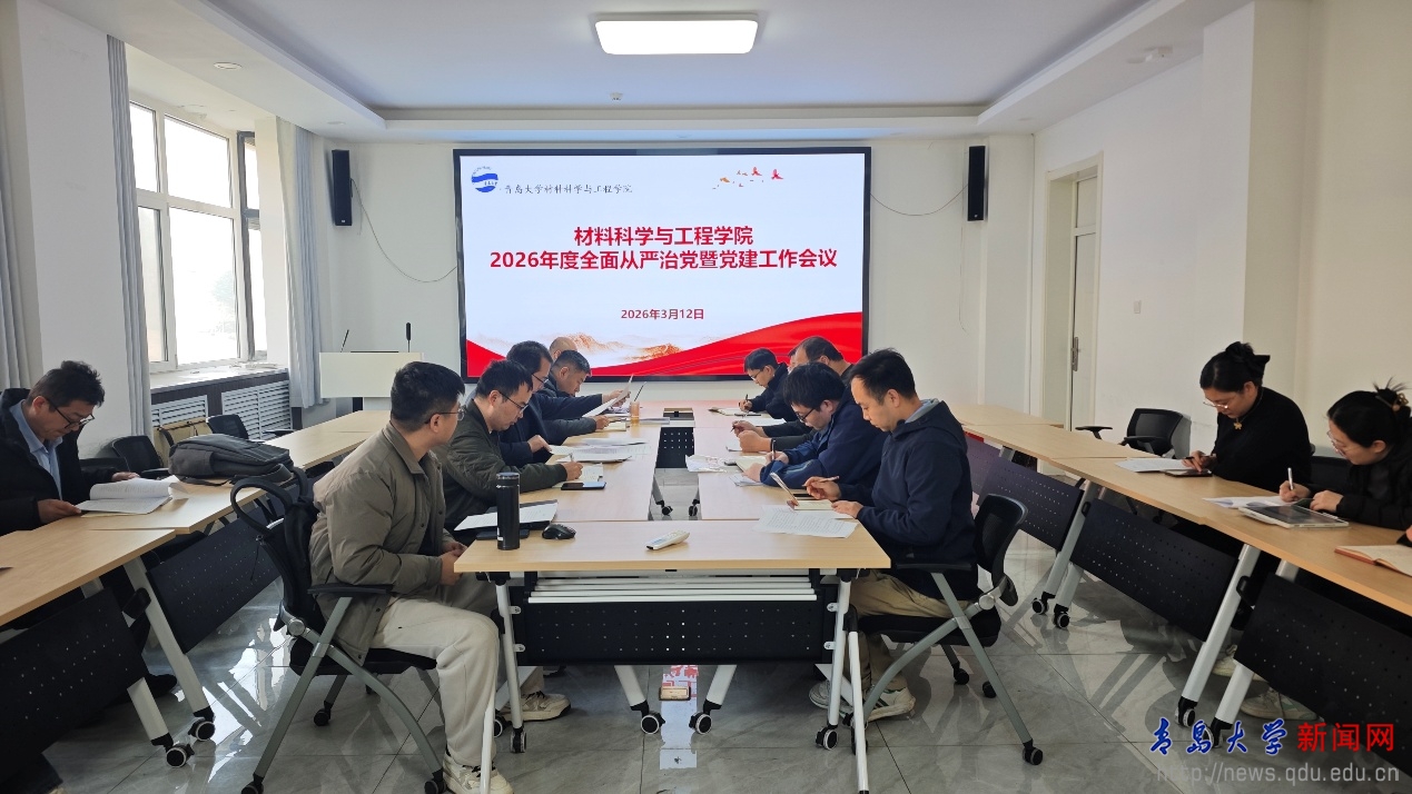 新闻网讯 3月12日,材料科学与工程学院在慎思楼308会议室召开2026年党的建设暨全面从严治党工作会议,专题传达学习学校有关会议精神,全面启动树立和践行正确政绩观学习教育,研究部署学院党建和全面从严治党年度重点工作。会议由党委书记张奎勤主持会议,学院党政领导班子成员、各党支部书记、系主任、内设机构负责人及相关师生代表出席会议。