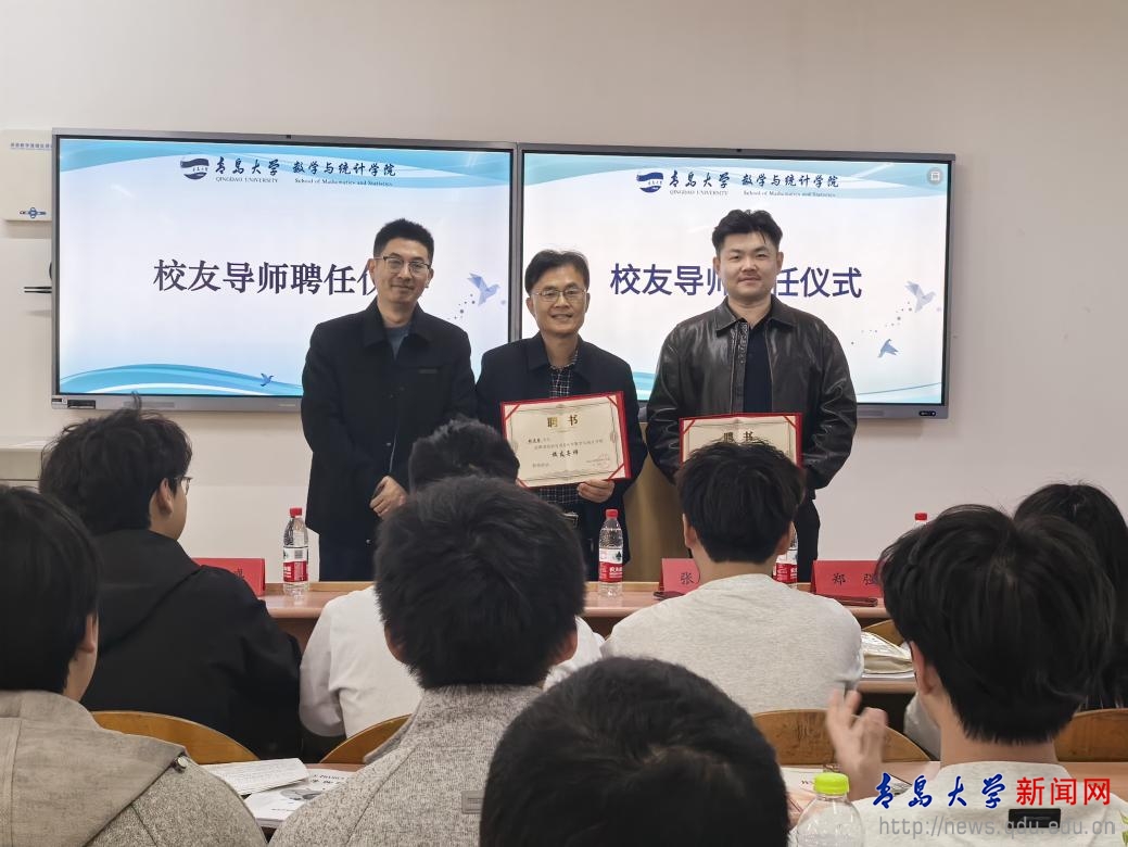 新闻网讯 3月28日,数学与统计学院校友大讲堂系列活动在青岛大学金家岭校区一教209教室顺利举办。本次校友大讲堂特邀1986级校友张启春、2011级校友郑强为学生授课。