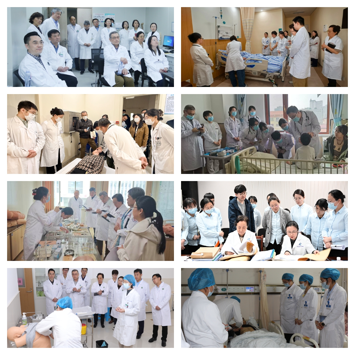 听取汇报后,专家组分为教学实践检查组和档案检查组,同步开展全面考察。教学实践组全程观摩教学查房、实习讲座、教学病例讨论,并对实习医生的临床基本技能进行现场考核;档案组则重点抽查了教师教案、讲稿,学生书写的病历、实习记录本(册)、科室带教记录本(册)及相关制度文件,详细询问实践教学各环节的运行情况。通过“查、看、问、测”相结合的方式,专家组对各医院本科教学、学生管理等工作进行了系统梳理与细致检查。