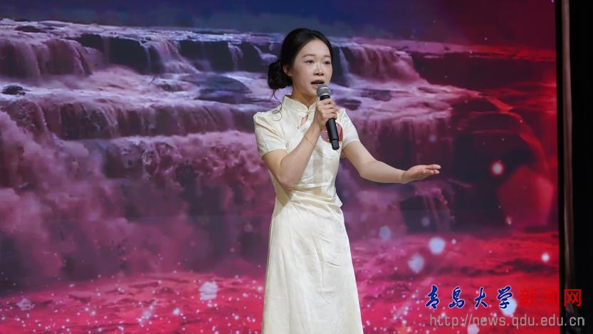 在决赛舞台上,李秋妆同学以饱满的情感与富有感染力的声音,深情演绎了经典作品《黄河颂》。她将黄河的磅礴气势与中华民族不屈不挠的精神融入诵读之中,声情并茂地展现了作品深厚的文化内涵,赢得了现场观众和评委的一致好评,充分展示了我校留学生扎实的中文功底和对中华优秀传统文化的深刻理解。