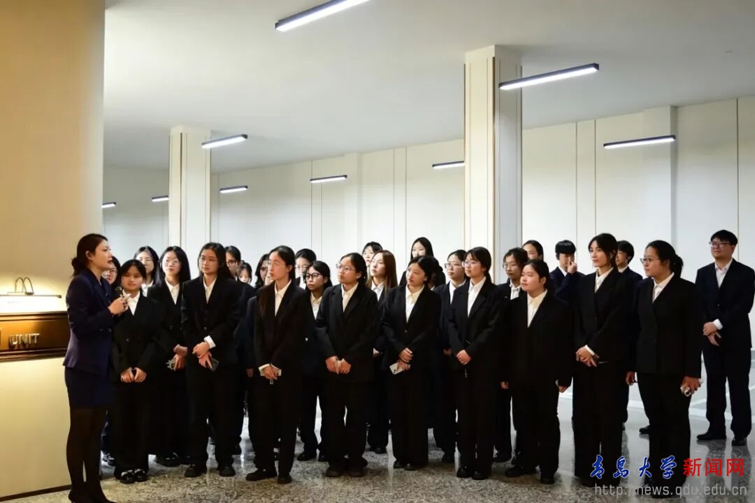 新闻网讯 4月18日,商学院与青特置业校企联合交流会在青特滨湖国际2期生活馆举行。商学院党委书记王庆金、MBA中心主任李金克、学工办主任兼精进班班主任李鹏,青特置业副总经理王志庆、人力行政部负责人房师臣、成本造采部负责人孔鲁、财务经理逯超、营销企划中心负责人陈玲,青岛电视台嘉宾李蕾出席活动。学院40名精进成长班学员参加本次交流研学。活动设置理念宣讲、人才培育、基地共建、实地研学、互动研讨等环节,搭建校企双向赋能、资源互通的育人合作平台。