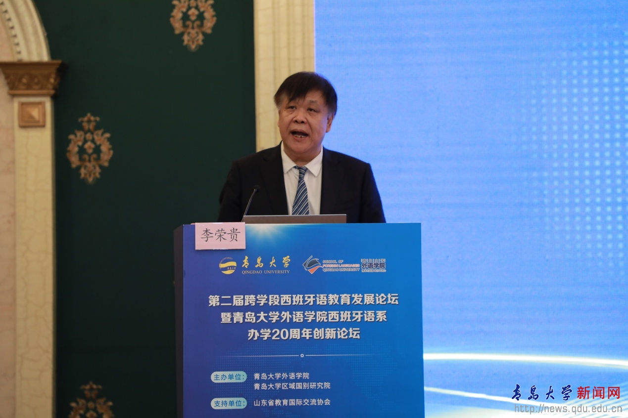 李荣贵首先向与会嘉宾致以热烈欢迎,向关心支持学校发展的各界同仁及校友表示诚挚感谢。随后简要介绍青岛大学办学概况及西班牙语系建设发展、国际交流与社会服务成果。他表示,本届论坛主题紧密对接国家战略与数智化发展趋势,对搭建跨领域沟通交流平台、推动西班牙语教育高质量发展具有重要意义。