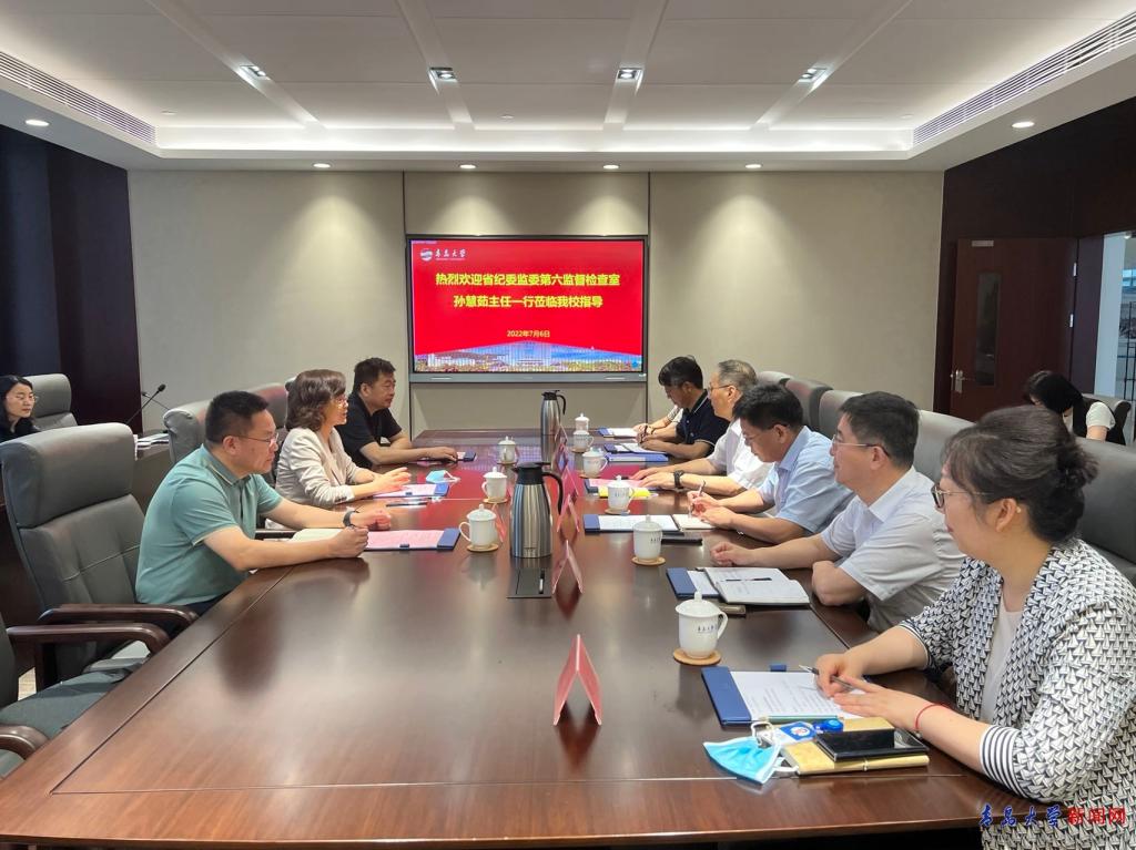 新闻网讯 7月6日上午,省纪委监委第六监督检查室主任孙慧茹、处长娄在良、青岛市纪委常委、市监委委员田青松一行来我校座谈调研。校党委常委、纪委书记、省监委驻青岛大学监察专员范玉斌主持座谈会,校纪委全体纪检监察干部参加会议。