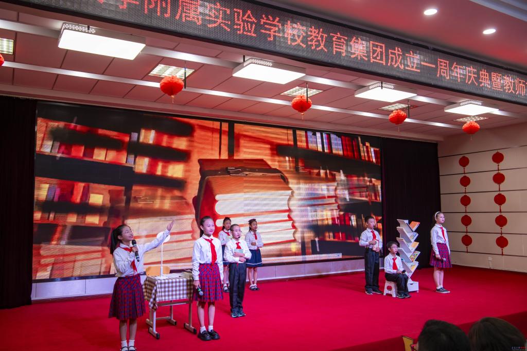 活动上,青岛大学附属实验幼儿园的教师、附属实验学校小学部和初中部的学生们分别献上了《青春快出发》《做一个幸福的读书人》《大河之子》节目。