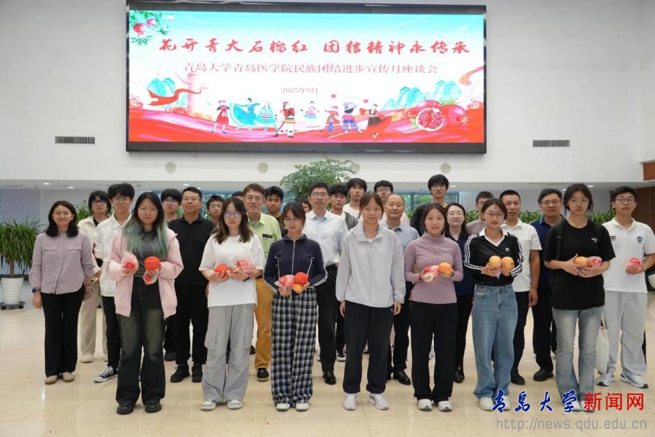 会后,徐华东校友向同学们赠送了象征民族团结的红石榴,表达“石榴籽精神”在青岛大学落地生根、开花结果的美好寓意。