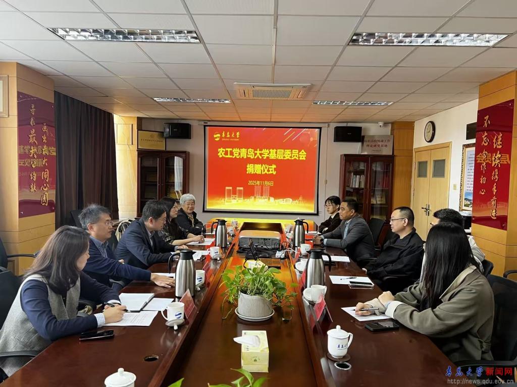 新闻网讯 11月6日,农工党青岛大学基层委员会在“统战之家”办公楼401会议室举行捐赠仪式。商学院教师、农工党党员刘电广为农工党青岛大学基层委员会慷慨捐赠,助力党派组织建设与活动开展。