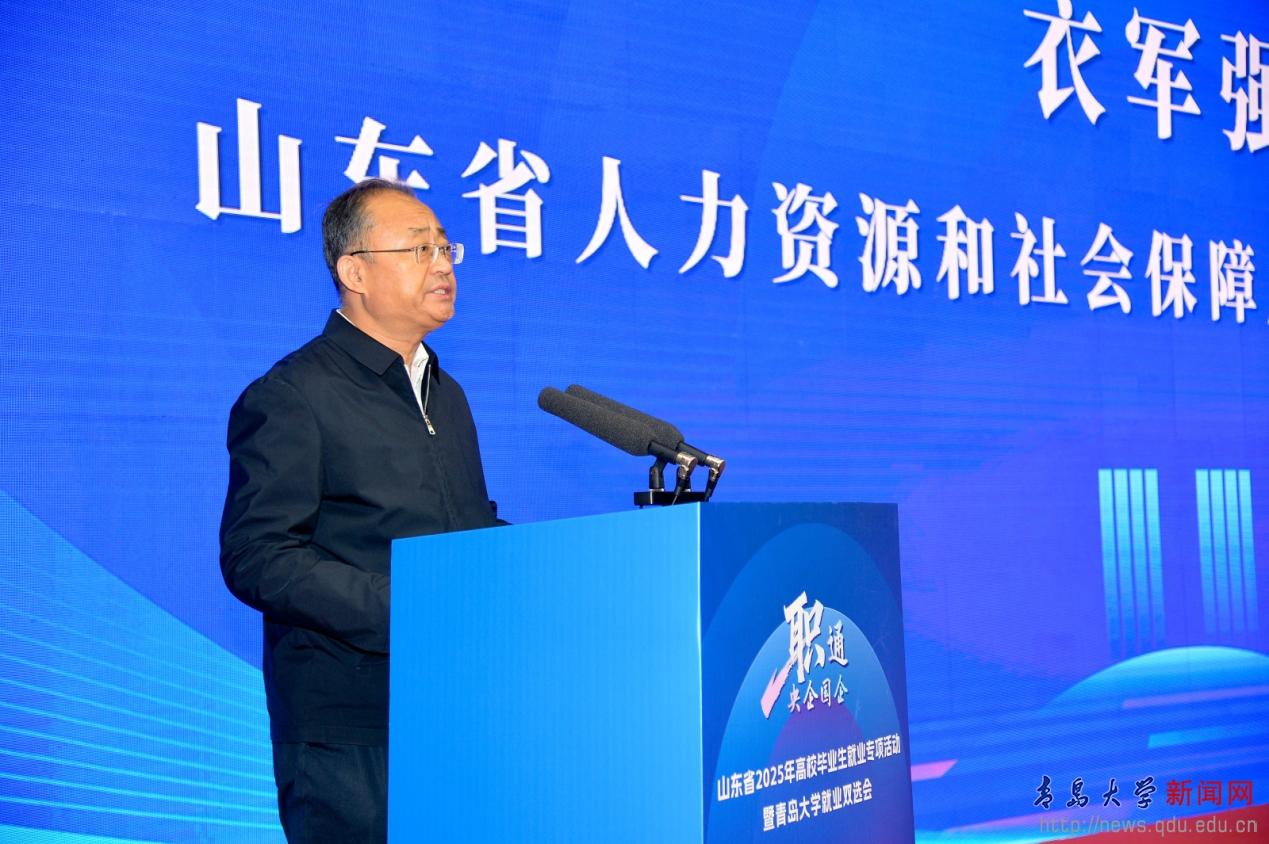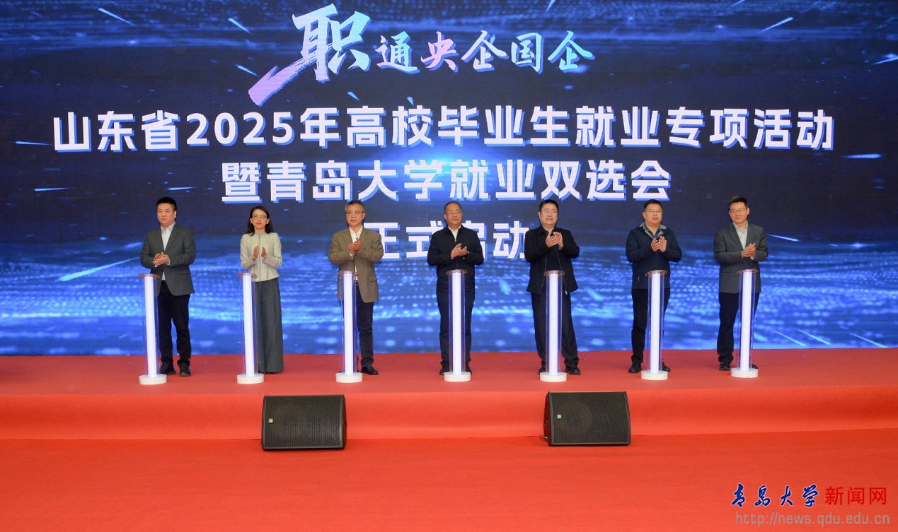新闻网讯 11月11日,由山东省人力资源和社会保障厅、山东省教育厅主办,青岛大学联合中国青岛国际经济技术合作(集团)有限公司承办的“职通央企国企”山东省2025年高校毕业生就业专项活动暨青岛大学就业双选会在我校体育馆成功举办。山东省人力资源和社会保障厅党组成员、副厅长衣军强、山东省教育厅二级巡视员管恩文,青岛市人力资源和社会保障局党组成员、副局长董海波、学校党委副书记肖江南、党委副书记陈涛出席活动。