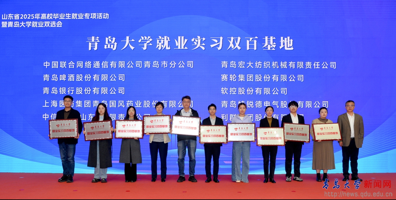 肖江南表示,学校将认真落实省人社厅、教育厅的决策部署,聚合校内外资源,挖潜创新,为推动实现2026届毕业生更加充分高质量就业贡献青大力量。仪式上,肖江南为新一批“青岛大学就业实习双百基地”授牌,标志着学校在深化校企协同育人、拓展高质量就业实习平台方面注入新动能。