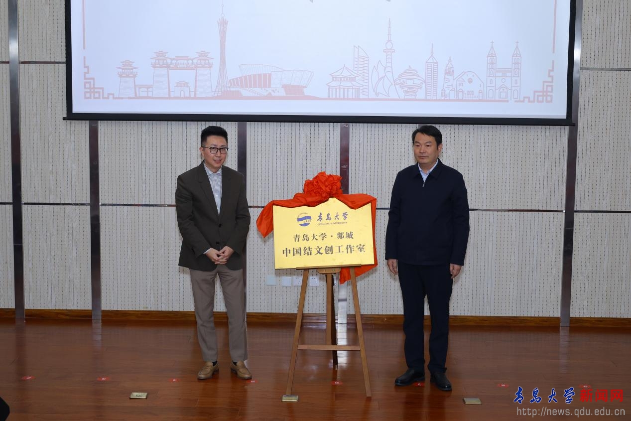 艺术学院党委书记魏喆吉与郯城县红花镇党委书记郑庆永共同为“中国结文创工作室”揭牌。