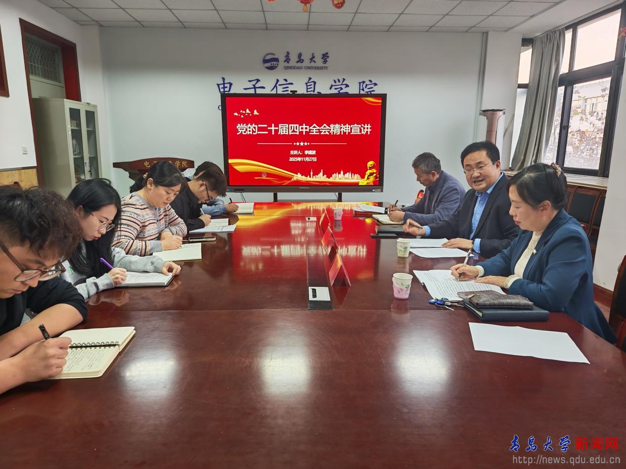 下一步,学院将以党的二十届四中全会精神为指引,谋划好学院“十五五”发展规划,守正创新、勇毅担当,为实现中国式现代化贡献“青大电子人”的力量。
