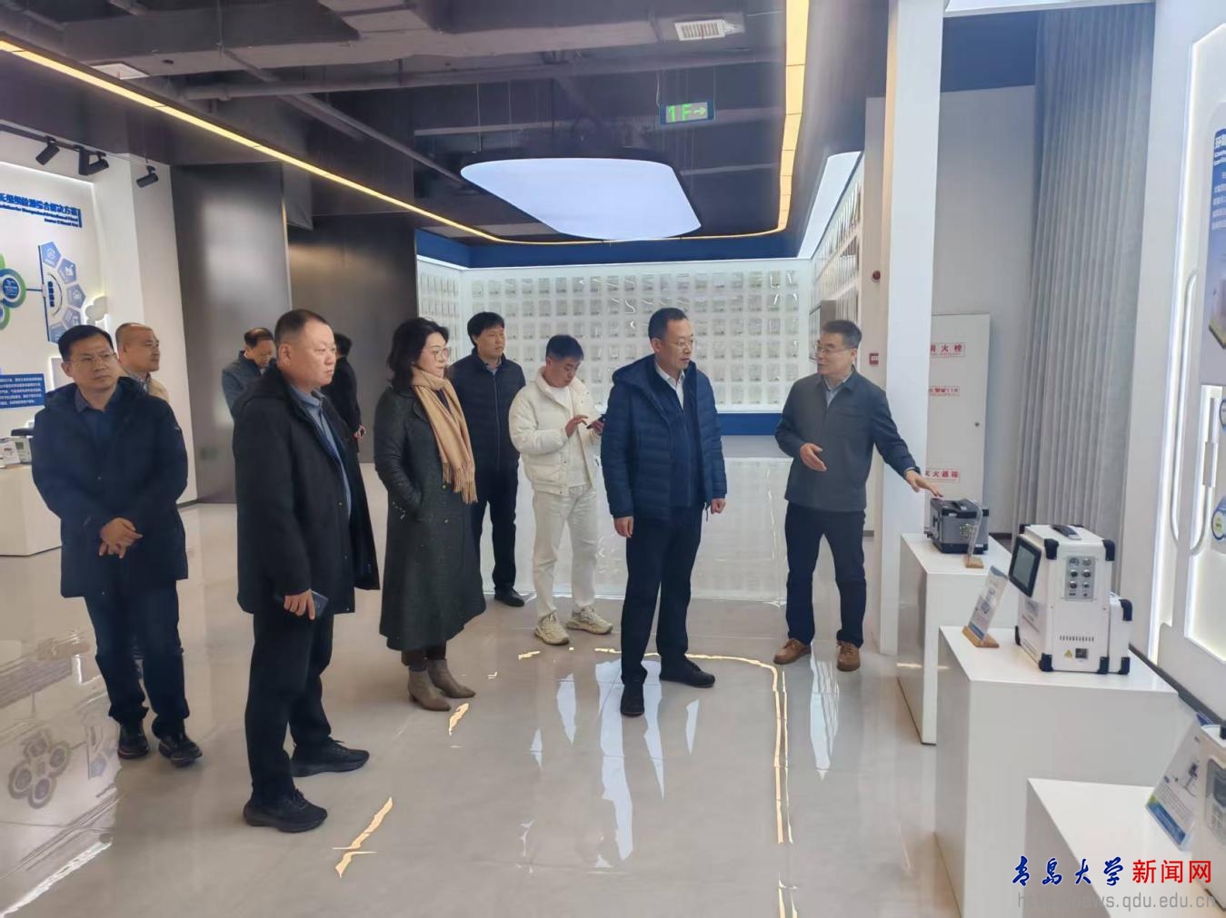 走访行程以政企交流为起点,刘恩贤一行首先抵达城阳区政府,与相关部门负责人围绕校地资源对接、合作方向拓展等议题展开座谈。随后,走访团队先后深入两家代表性校友企业实地调研。首站来到青岛迦南美地家居用品有限公司,该公司总经理、我校88级纺织专业校友郝诚全程热情接待,详细介绍了企业在纺织家居领域的发展历程、核心产品研发及未来战略布局;紧接着,团队前往青岛众瑞智能仪器股份有限公司,公司董事长、我校87级应用物理专业校友何春雷对母校一行的到访表示热烈欢迎,并结合企业在环境监测仪器研发方面的技术优势与行业贡献进行了全面分享。
