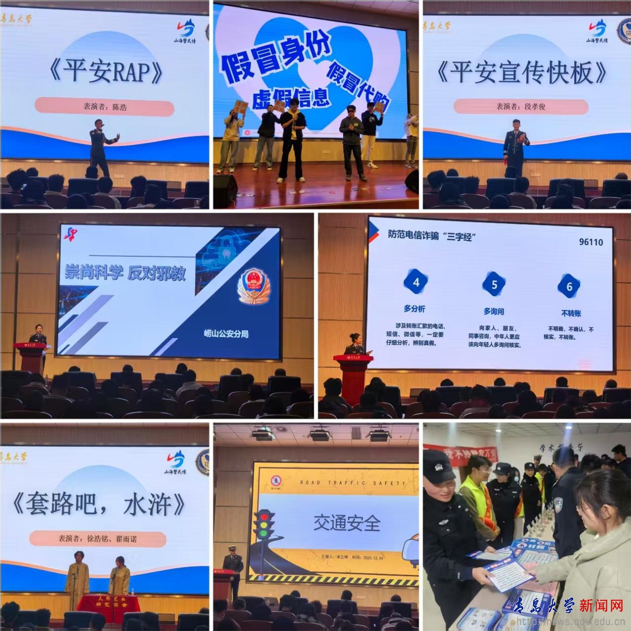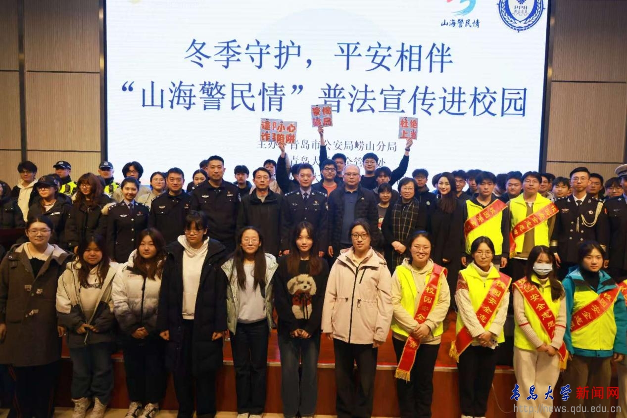 新闻网讯 为深入推进法治校园建设,提升学校师生法治意识和安全防范能力,12月4日,青岛市公安局崂山分局组织“山海警民情”工作团队走进我校,开展了一场别开生面的“警校携手,共筑平安”主题普法宣传进校园活动。此次活动旨在通过“宣讲+节目+互动”的立体化模式,面向广大师生开展安全知识普及,将法律知识融入具体情境,为师生们带来了一场别开生面的“法治盛宴”。