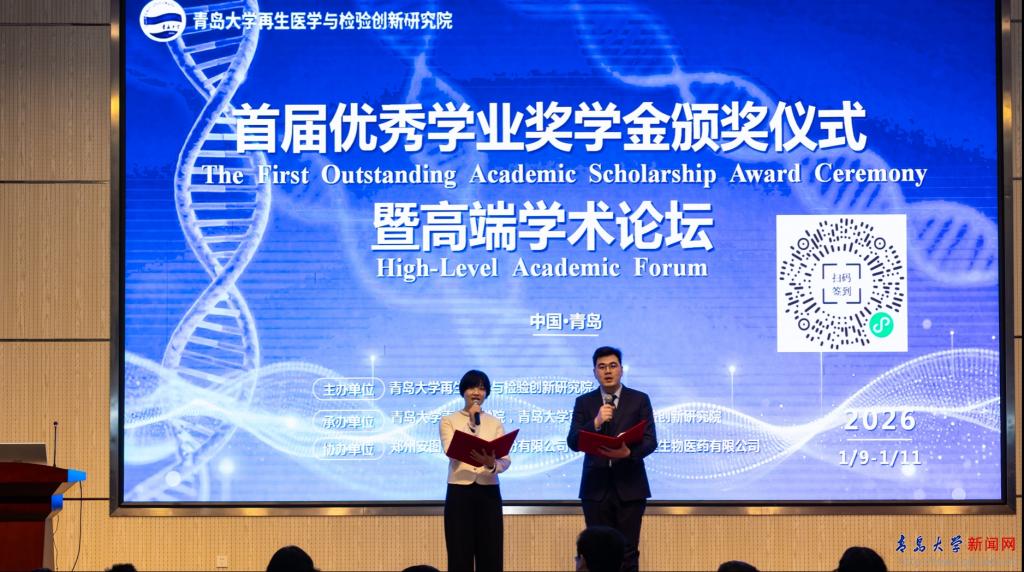 新闻网讯 1月9日至11日,由青岛大学再生医学与检验创新研究院主办的“首届安图前进奖学金颁奖仪式暨高端学术论坛”在浩园B104学术报告厅正式拉开帷幕。校党委常委、副校长李建波出席大会并致辞。