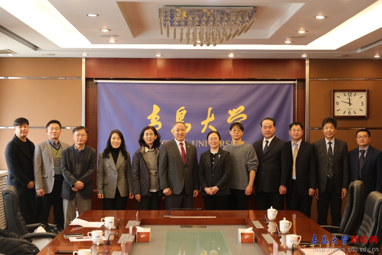 韩国晋州教育大学教务处长、规划处处长、学生处处长、图书馆馆长、信息化与计算机学院院长等一行七人陪同到访。我校国际交流合作处、教育科学学院、青岛大学师范学院相关负责人参加会谈。工作会谈前后,金圣圭校长一行与教育科学学院教师代表座谈,并参观了校史馆。
