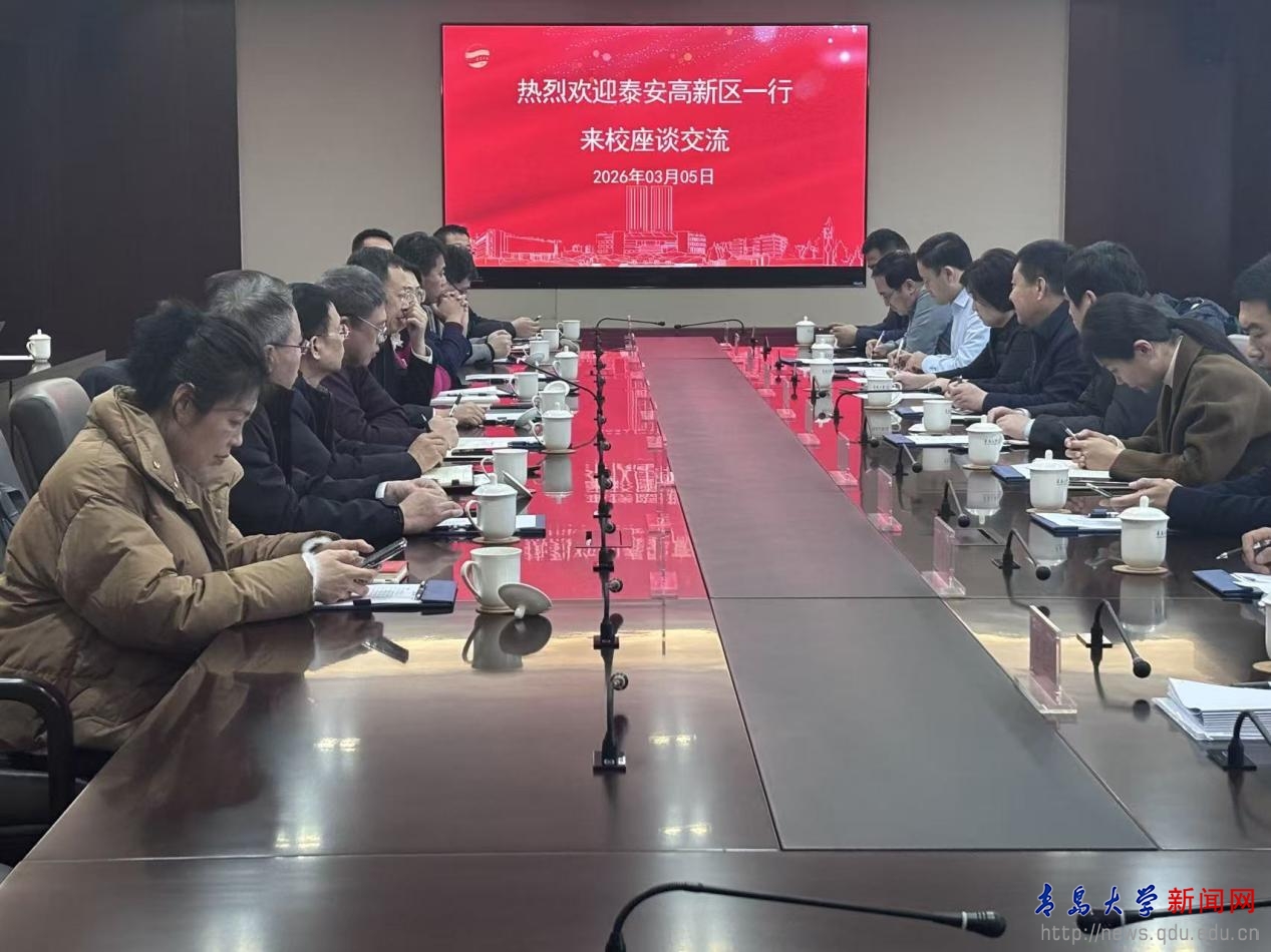 韩炳奎对我校近年来取得的发展成就表示祝贺,对我校周到细致的安排表示感谢。他表示,通过实地调研,深入了解了青岛大学在优势学科建设、成果转化平台打造及科技创新等方面的工作,倍感振奋,收获颇丰。他详细介绍了泰安高新区的历史沿革、产业布局、招商引资和项目建设等情况,期待双方进一步深化合作,推动资源深度融合,加快成果落地转化。