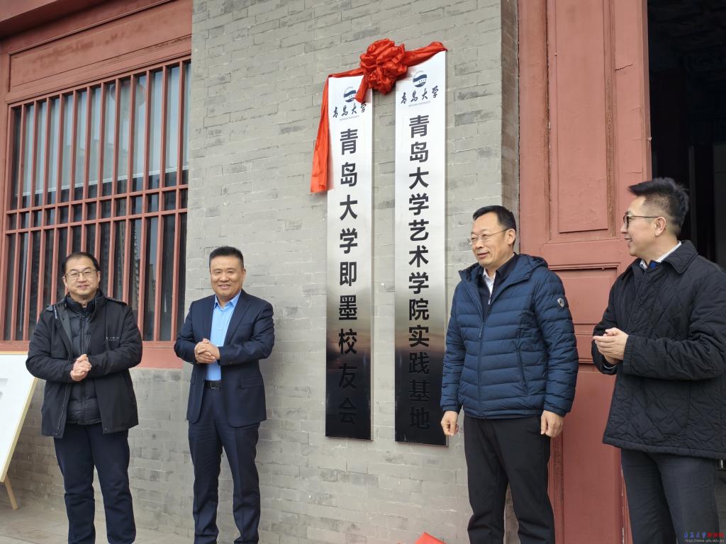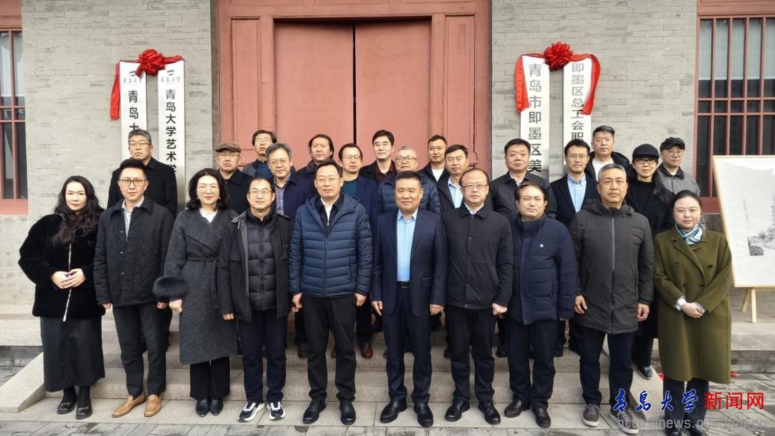 刘恩贤、马明强、艺术学院党委书记魏喆吉、即墨校友会会长宋贵欣等共同为“青岛大学艺术学院实践基地”“青岛大学即墨校友会”“青岛市即墨区美术家协会”“即墨区总工会职工文艺工作者之家”揭牌。