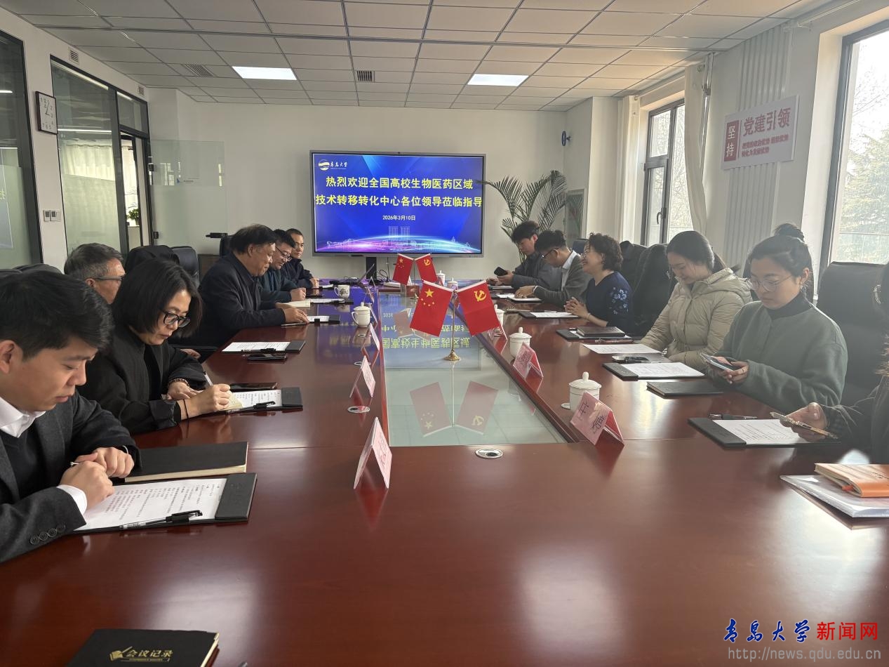 赵饮虹对青岛大学在学科建设、综合实力提升及社会服务等方面取得的成就给予充分肯定。她从建设背景、运营团队、载体空间建设以及与高校合作项目转化成效等方面详细介绍了全国高校生物医药区域技术转移转化中心的基本情况。她表示,中心的建设目标与我校优势学科及研究领域高度契合,希望未来从高校科技成果梳理、大型成果路演、概念验证中心建设等方面切入,共同破解高校科技成果“不能转、不好转、不会转、不愿转、不敢转”的痛点,推动双方在生物医药领域的成果加快落地转化。