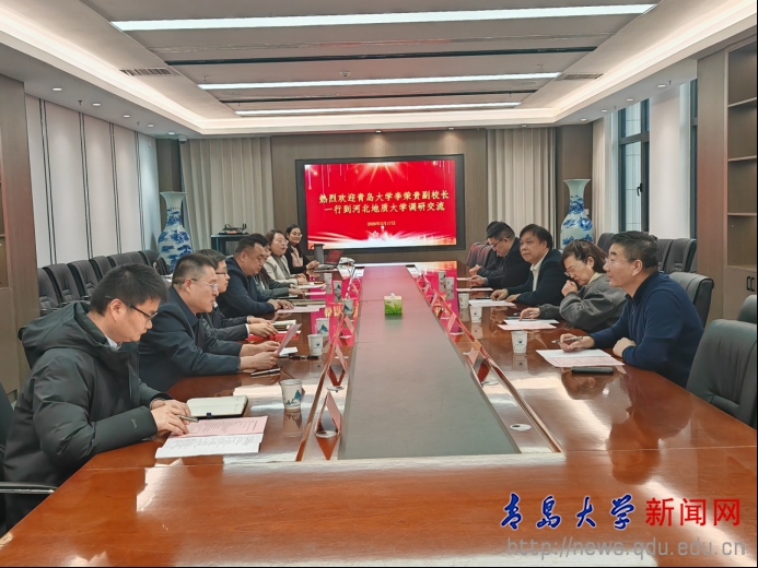 在河北地质大学座谈会上,与该校党委常委、副校长赵强及相关部门负责人进行交流。双方围绕科技成果转化模式创新、重大科研项目联合申报及博士点申报建设等进行了深入交流,并就进一步加强校际合作达成多项共识。