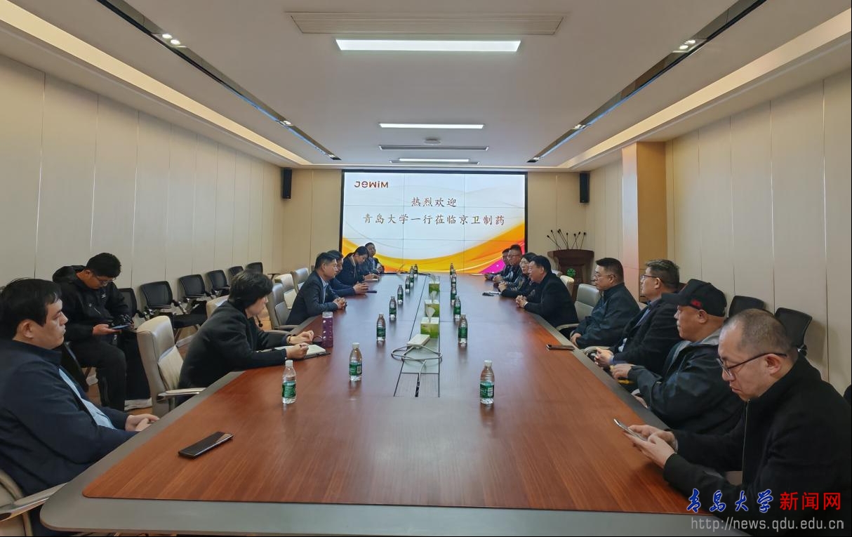 调研期间,陈涛一行与山东京卫制药有限公司董事长李铁军等开展座谈交流。陈涛简要介绍了学校近年来的建设发展情况,药学院院长孙勇介绍了学院学科建设情况和最新科研成果,双方就医药人才培养、学生实习就业、科研合作、成果转化等议题深入交流,共谋合作发展路径。